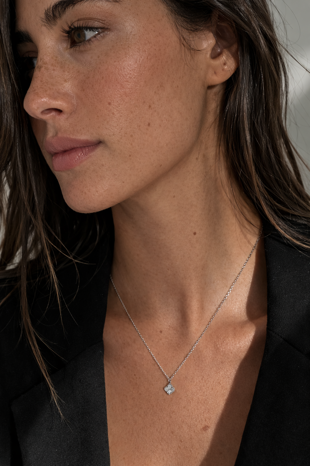 Descubrí el Collar Trebol Facetado Silver, una joya que combina elegancia y buena fortuna. Fabricado en plata 925 de alta calidad, este collar presenta un delicado trébol de 4 hojas facetadas, símbolo clásico de suerte. Su diseño ajustable se adapta perfectamente a tu estilo, haciéndolo una pieza super de moda para cualquier ocasión. Ideal para regalar o para darte un gusto, este collar es un must en tu colección de joyas argentinas.